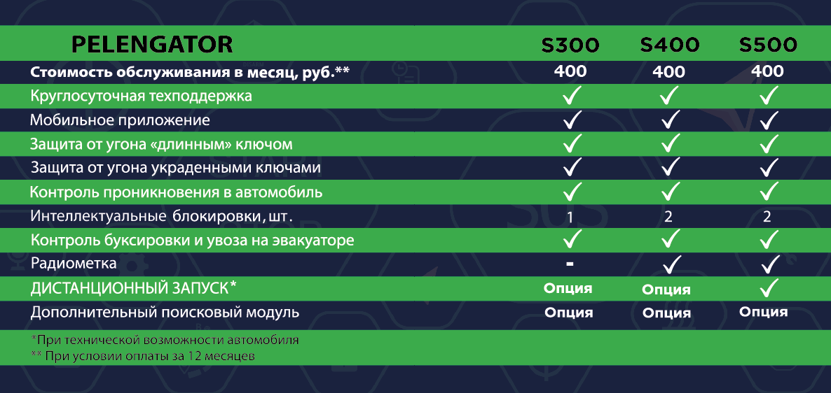 PELENGATOR – это специальная система безопасности, которая функционирует по стандартам GPS/Глонасс/GSM. Такая система идеально подходит для того чтобы защитить транспорт от угона, а также для того чтобы мониторить подвижные объекты. Главные функции этой системы безопасности для транспортных средств: защита от угона, определение местоположения, трекинг, запуск мотора, оповещение владельца в случае эвакуации с места, служба помощи в дороге и т.д.